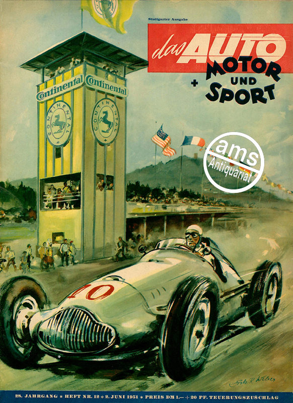 Diese Ausgabe gehört nicht nur inhaltlich, sondern auch optisch zu den Highlights der frühen 50er Jahre. Das kunstvolle Titelbild im Stil klassischer Rennplakate zeigt eindrucksvoll die Atmosphäre des historischen Motorsports.