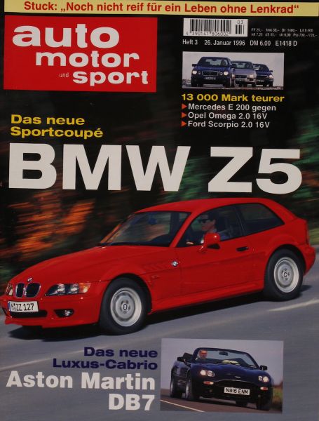Originale Auto Motor und Sport Zeitung 1996 – vom 26.1.1996 bis 8.2.1996 – eine besondere Geschenkidee für Autoliebhaber und Fans klassischer Automobilgeschichte